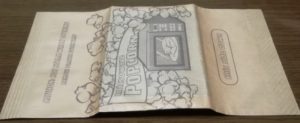 3つ折りになって入っていて、中に味付けがされたポップコーンの種が入っているようですね。