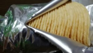 お馴染みの筒状の中に包装されているポテトチップスたち。