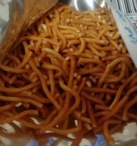 ラーメンの麺をそのままスナックにしたような形ですね。