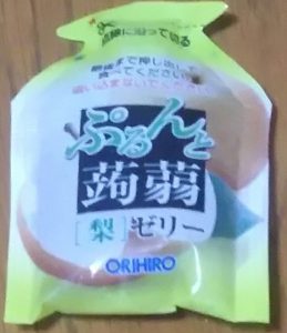 梨味のゼリー、カロリーが低く手軽に食べられるおやつなのがありがたいですね。
